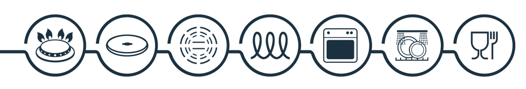 Le preziose satinature e verniciature cromatiche abbinate agli iconici manici in acciaio inox lucido, dotano la linea di preziosità ed eleganza. Il perfetto equilibrio tra tecnologia, performance e stile esclusivo la rende perfetta da portare direttamente in tavola.
